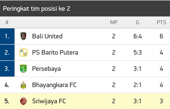 Klasement Sementara Di Peringkat 4 Persebaya Online
