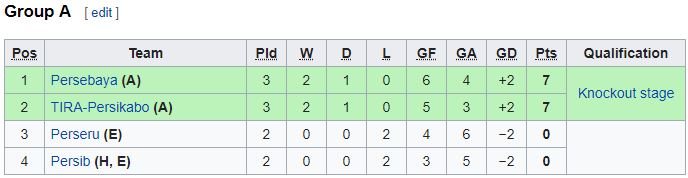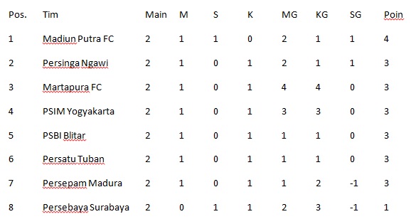 Klasemen Sementara Grup 5 Persebaya Persatu Tuban