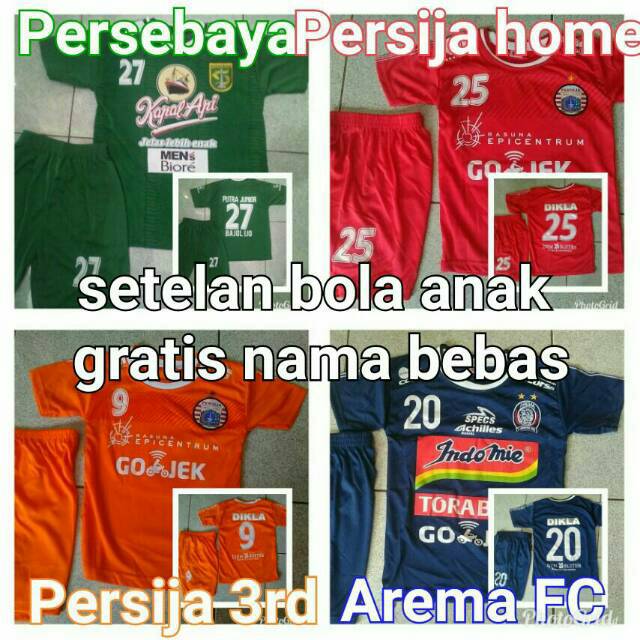 Jersey Kids Setelan Anak Persebaya Surabaya Persija Jakarta Arema Fc Bali United Gratis Nama Bebas